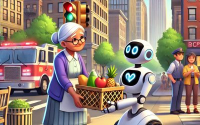 Қаланың бір бұрышында кішкентай робот өмір сүрді. Ол Роби деп аталды. Роби өте ақылды және мейірімді еді. Оның үлкен арманы болды – адамдарға көмектесу. Бір күні Роби қаланың орталығында жүргенде, бір кемпір көмек сұрап тұрғанын көрді. Кемпірдің азық-түлік себеті ауыр болғандықтан, үйіне жеткізуге күші жетпей тұрғанын түсінді. Роби дереу көмекке келді және азық-түлікті кемпірдің үйіне…